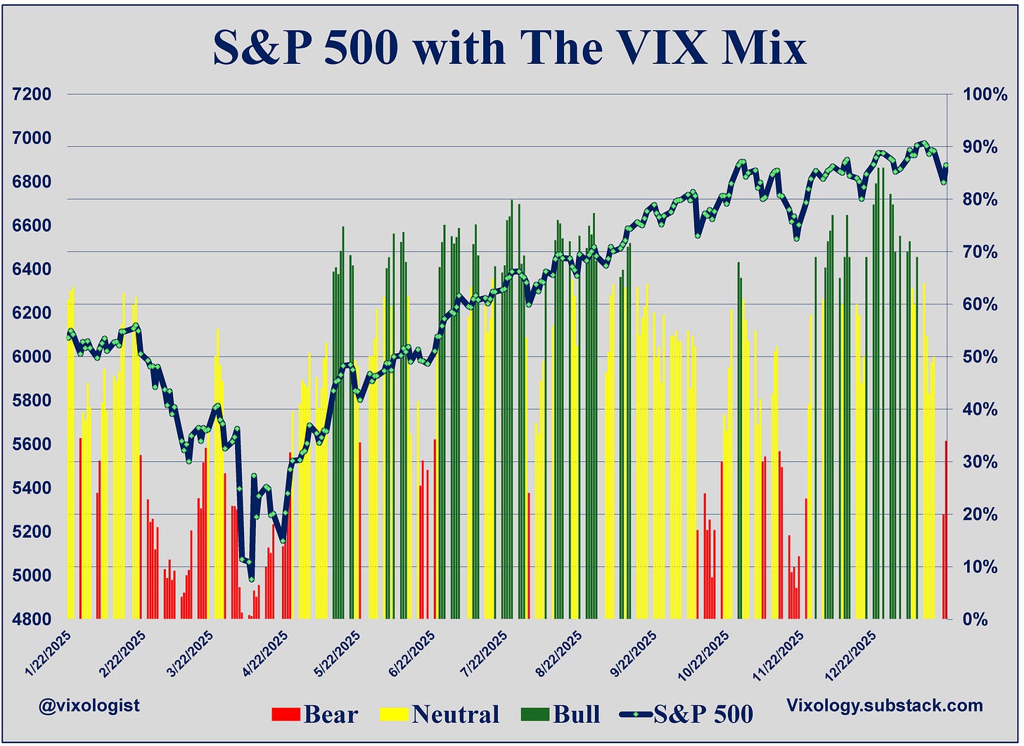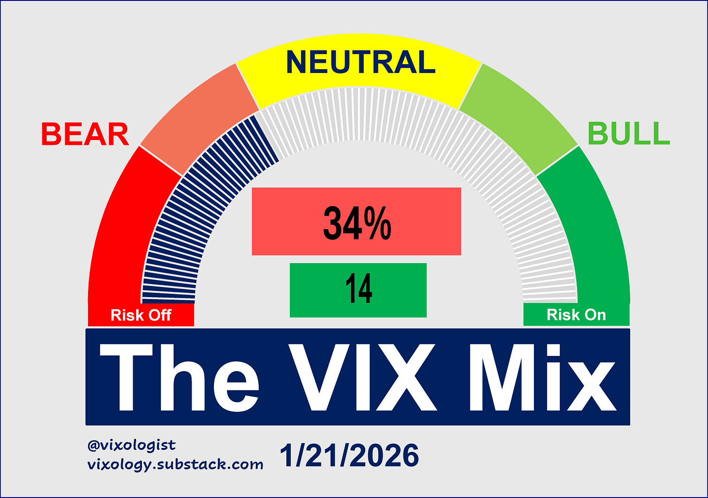 Whichever sound track you choose, it was a wild couple of days. The VIX Mix plunged 30 points on Tuesday and then rebounded 14 points yesterday. Still mired in the red, but likely to claw its way back into the yellow by today’s close.