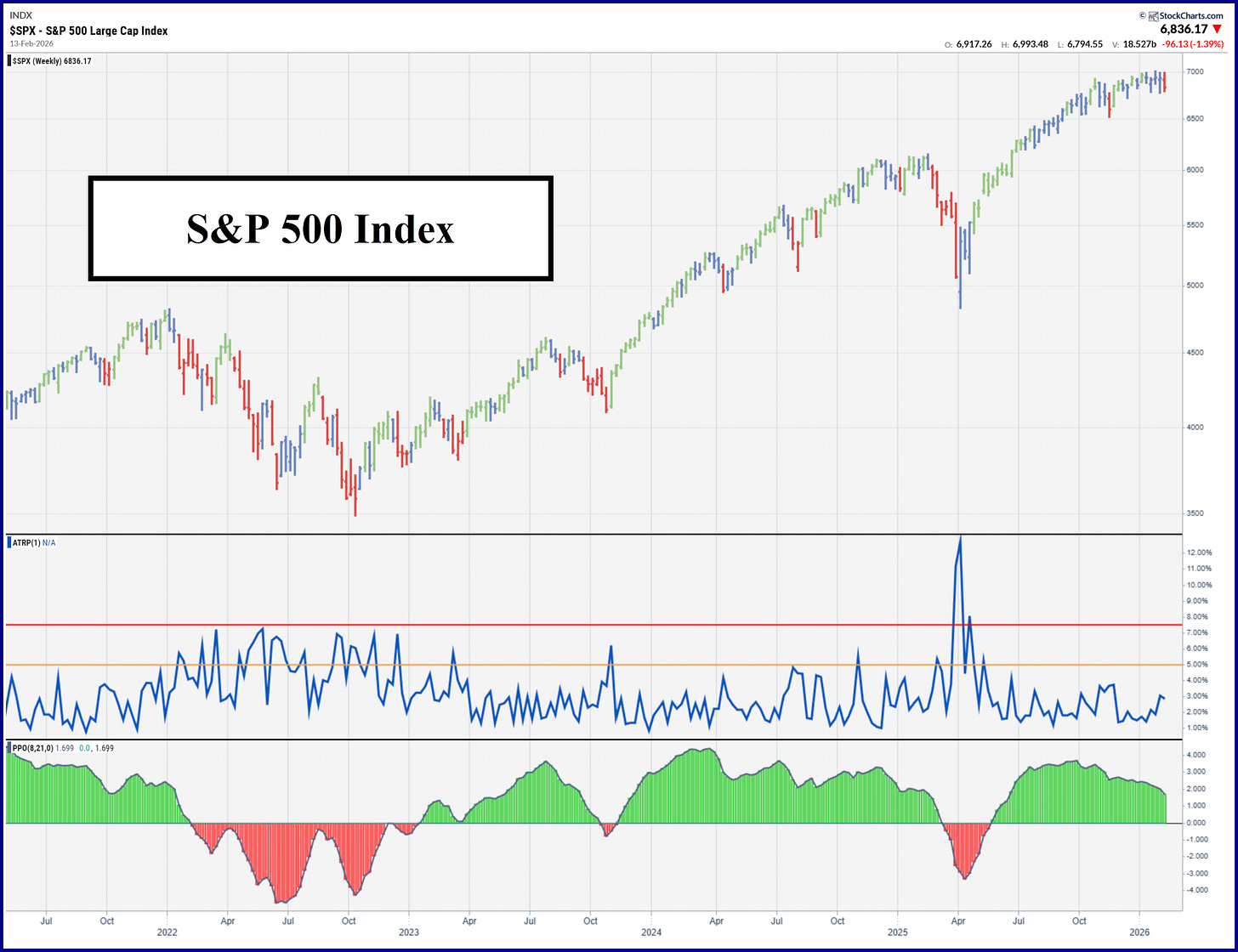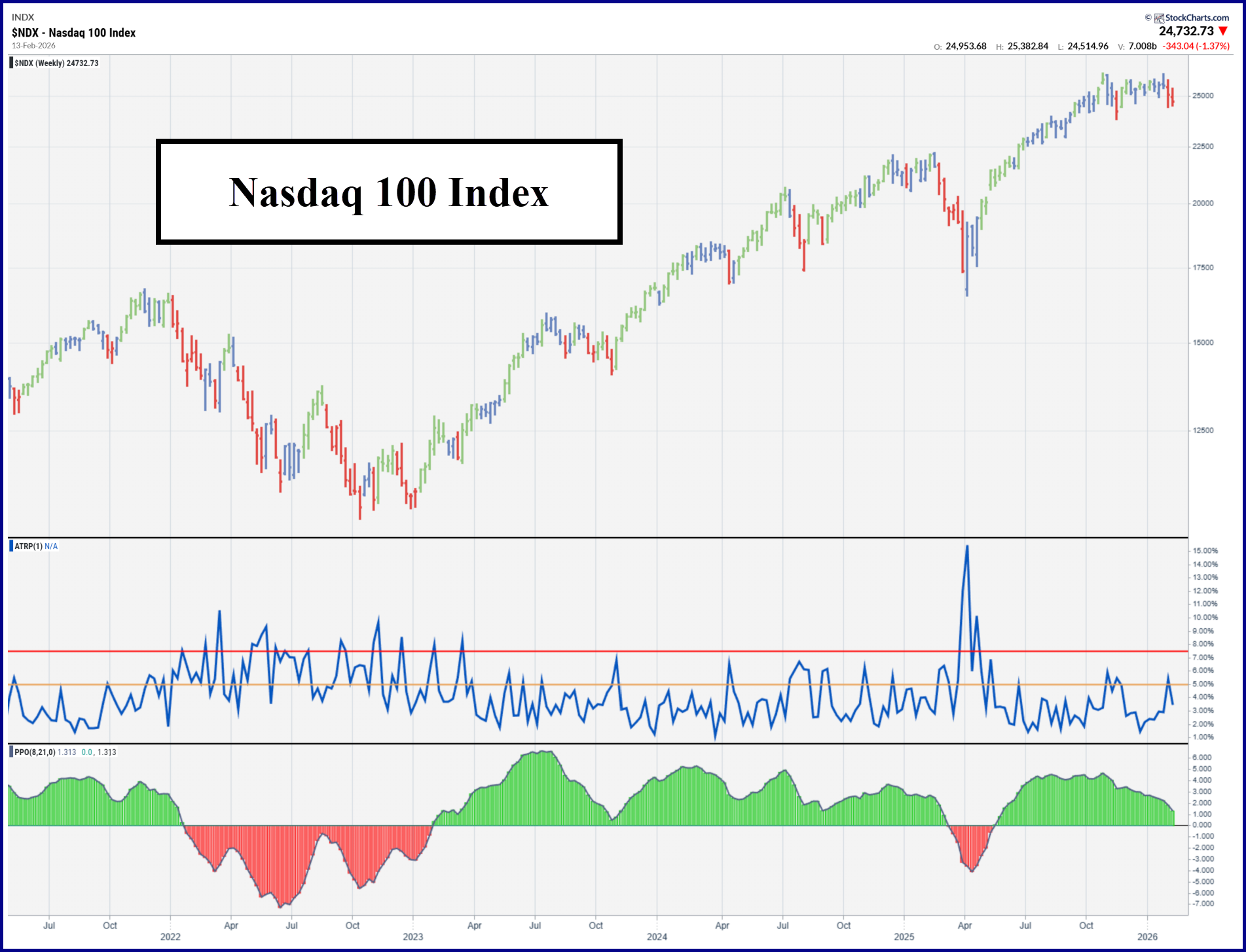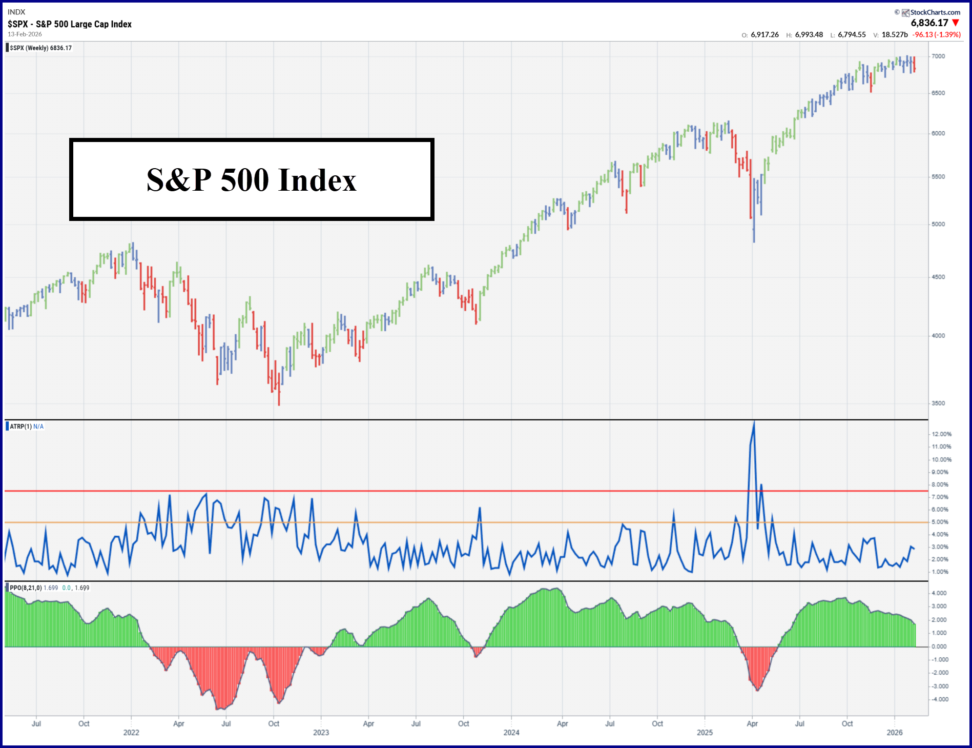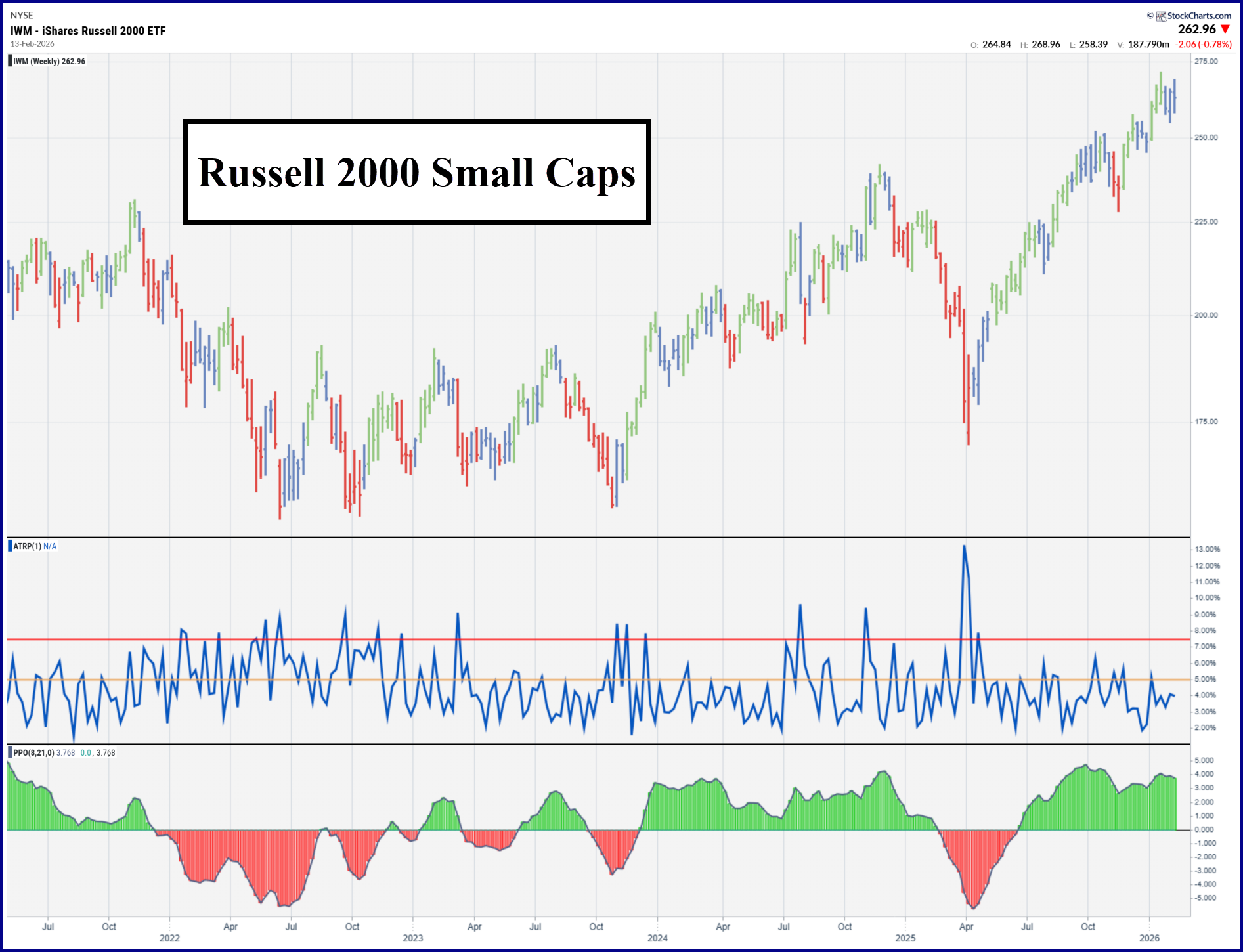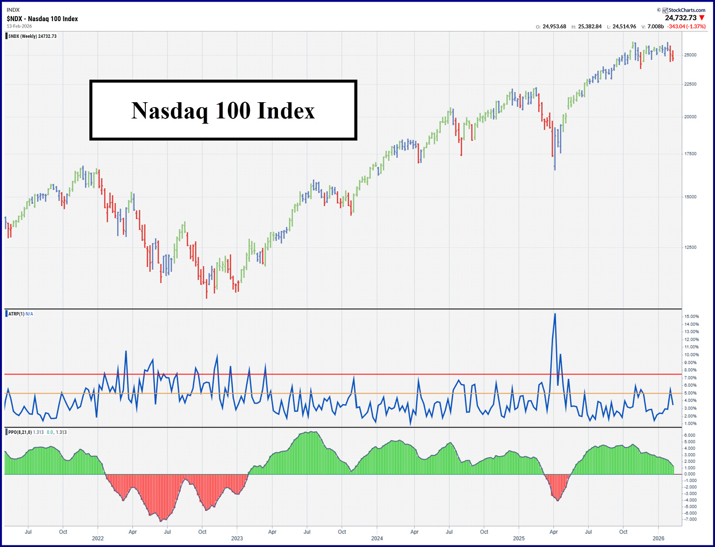 Seems to me that we have a whole bunch of investors who have a nervous outlook and have taken steps to protect the gains in their portfolios. The big-boy indices (SPX and NDX) have seen some air come out of their biggest constituents (Mag 7). Growth has given some back to value and large cap has given some back to small cap. This may be a healthy rotation but not everyone is comfortable. Put the recent volatility of precious metals and crypto into the blend and we have investors looking for the next durable trend while unsure what it will be. We can’t be surprised by more volatility as this plays out. And that volatility could get spicy should we add a nasty headline or two. Long-term investors should keep an eye on the weekly charts. Traders may have some shorter-term opportunities.