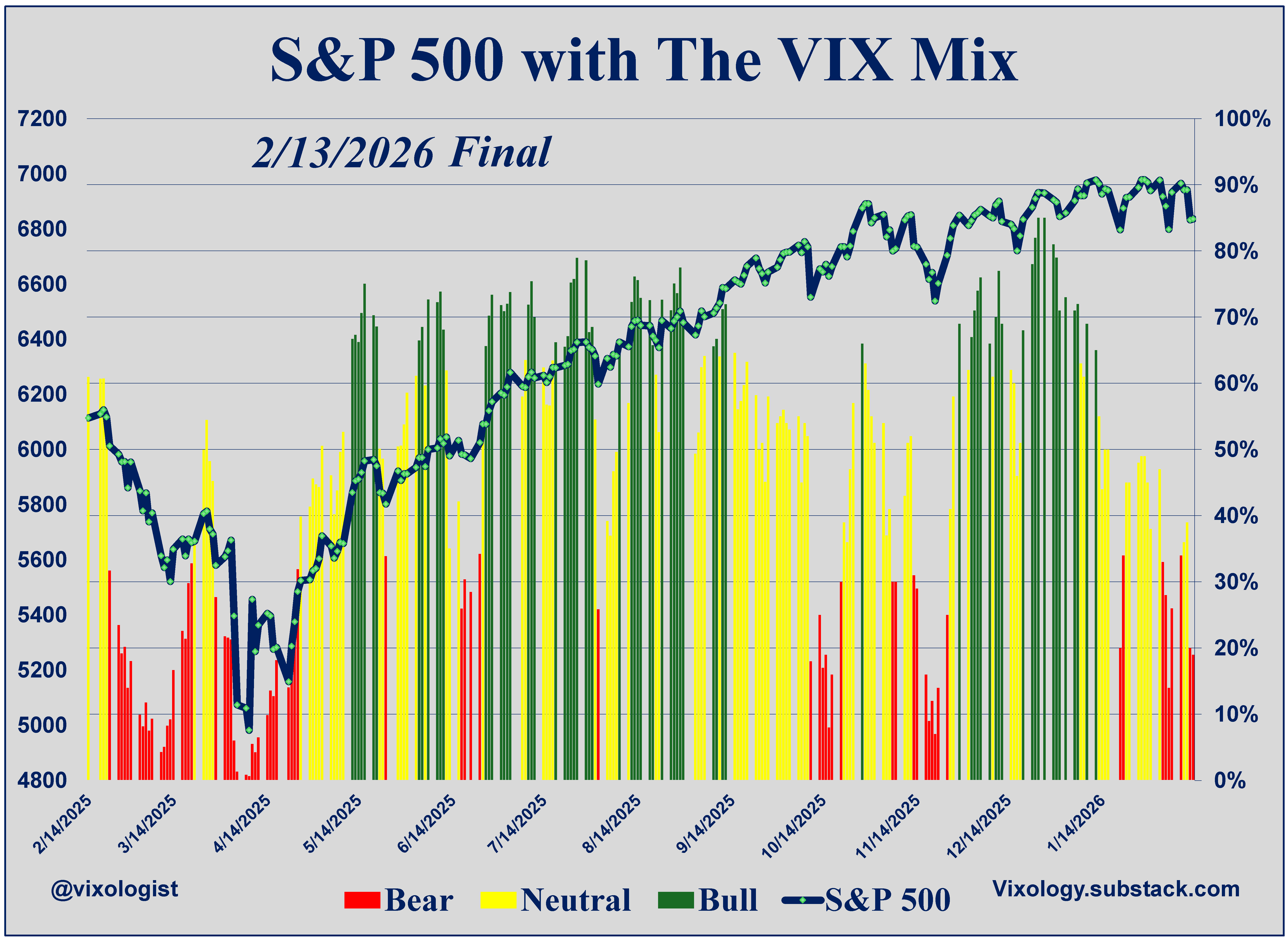Even as the Dow and S&P500 have put in new all-time highs in 2026, the Mix has been trending lower and it’s been a month (23 trading days) since the chart below has shown a green bar.