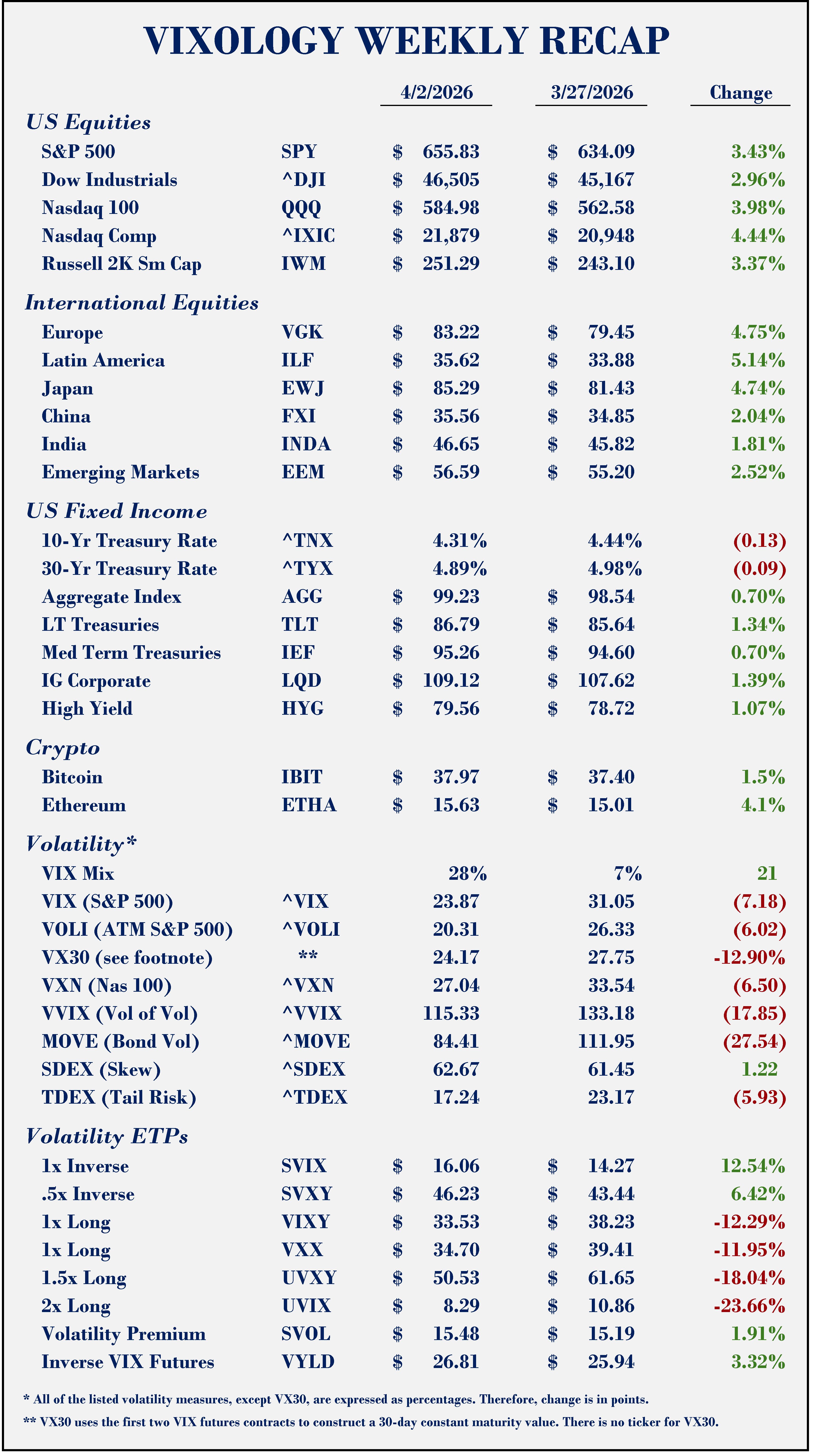 Traders are fond of saying things like “Price pays” or “Price is the only thing that matters.” For the record, I generally agree with that sentiment. Your thesis about how the world works and how markets should behave might prove to be correct over time, but price may also bankrupt you before the stars align. Results of the holiday shortened week that ended on Thursday would suggest that the worst of the Middle East war is behind us. Equity markets around the world powered higher while bonds rallied and all of our volatility measures showed significant improvement.