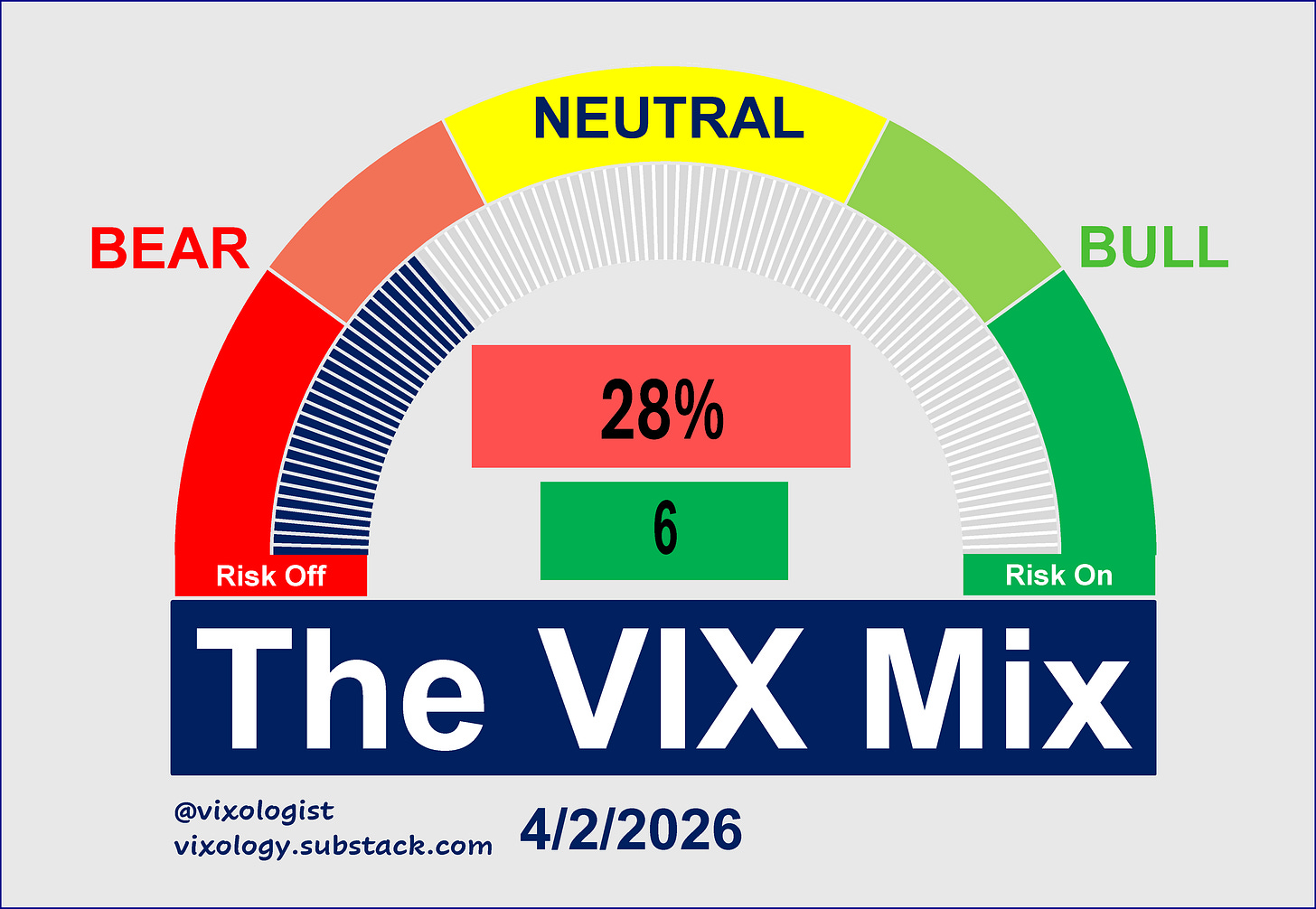These improvements are also reflected in our composite VIX Mix. There was an improvement of six points on Thursday alone, taking the gauge up to 28%. We haven’t seen that level since the Friday before the first attacks on Iran (Feb 27th). As shown in the recap at the top of the post, the Mix rallied 21 points for the week.