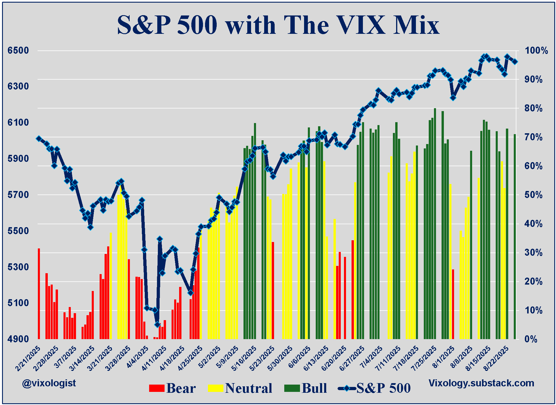 The VIX Mix also pulled back a hair yesterday. Not much, but no follow through on the 21 point jump from Thursday to Friday.